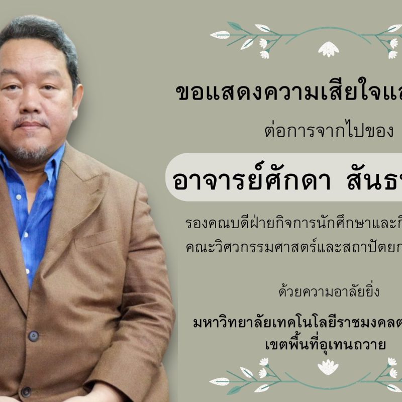 ขอแสดงความเสียใจและอาลัยอย่างสุดซึ้ง ต่อการจากไปของ “อาจารย์ ศักดา สันธนะวิทย์” ข่าวประชาสัมพันธ์ ขอแสดงความเสียใจและอาลัยอย่างสุดซึ้ง ต่อการจากไปของ “อาจารย์ ศักดา สันธนะวิทย์”