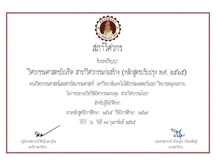 #สภาวิศวกร รับรองปริญญาหลักสูตร “วิศวกรรมศาสตรบัณฑิต สาขาวิศวกรรมก่อสร้าง (หลักสูตรปรับปรุง พ.ศ.๒๕๖๕)” คณะวิศวกรรมศาสตร์และสถาปัตยกรรมศาสตร์ มหาวิทยาลัยเทคโนโลยีราชมงคลตะวันออก วิทยาเขตอุเทนถวาย