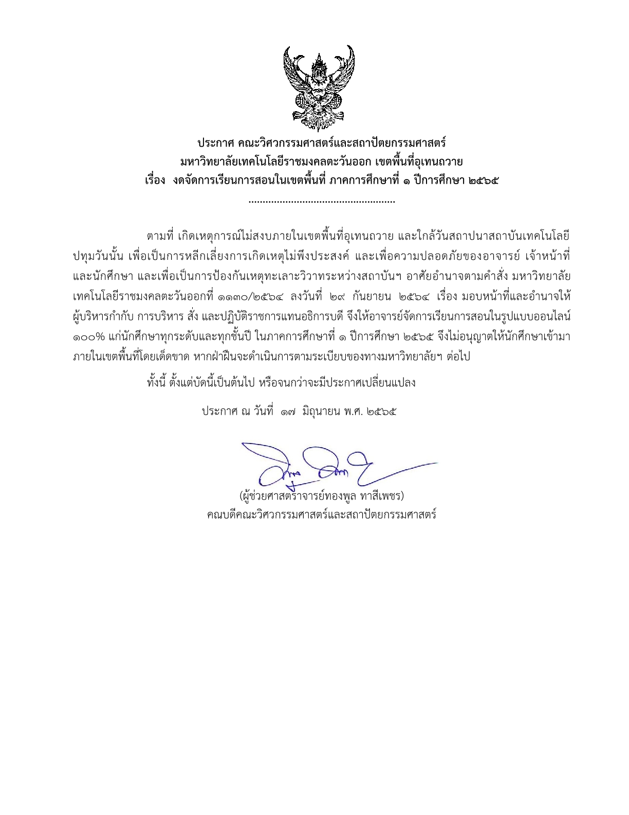 งดจัดการเรียนการสอนในเขตพื้นที่ ภาคการศึกษาที่1/2565