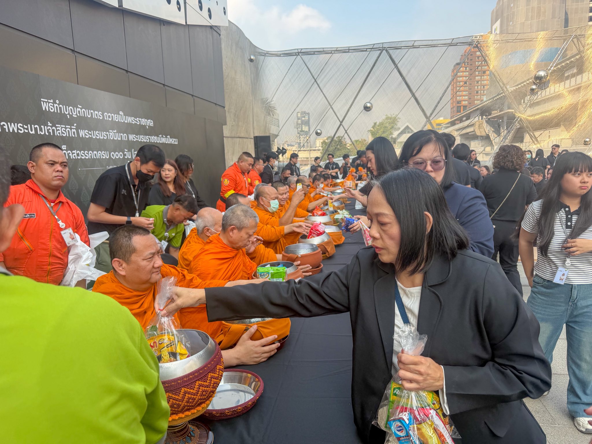 นางรัตนาภรณ์ ปิ่นทอง รักษาราชการแทนหัวหน้าสำนักงานคณบดี ได้รับมอบหมายจาก อาจารย์สมบัติ ต่อวัฒนชัย รักษาราชการแทนคณบดีคณะวิศวกรรมศาสตร์และสถาปัตยกรรมศาสตร์ พร้อมด้วยบุคลากรและนักศึกษา เข้าร่วมพิธีทำบุญตักบาตรแด่พระสงฆ์ จำนวน 20 รูป เพื่อถวายเป็นพระราชกุศลแด่ สมเด็จพระนางเจ้าสิริกิติ์ พระบรมราชินีนาถ พระบรมราชชนนีพันปีหลวง เนื่องในโอกาสครบ 100 วัน (สตมวาร) แห่งการเสด็จสวรรคต